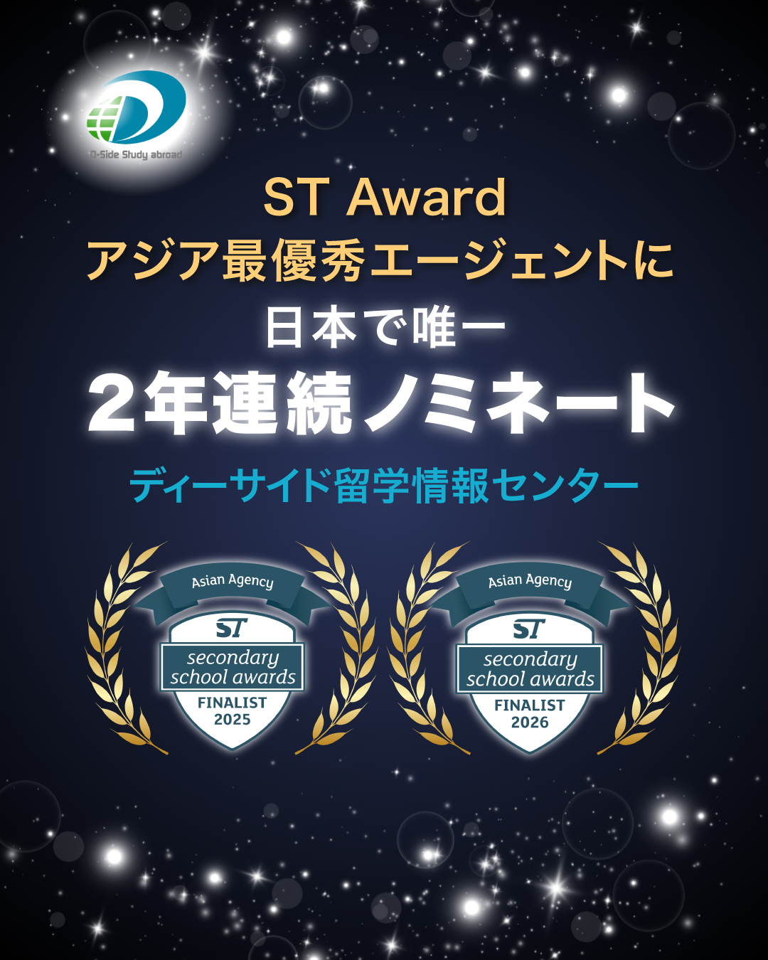 世界最高峰の留学アワード「ST Star Awards Secondary部門」にて、日本で唯一2025年・2026年、2年連続アジアベストエージェントにノミネート!
