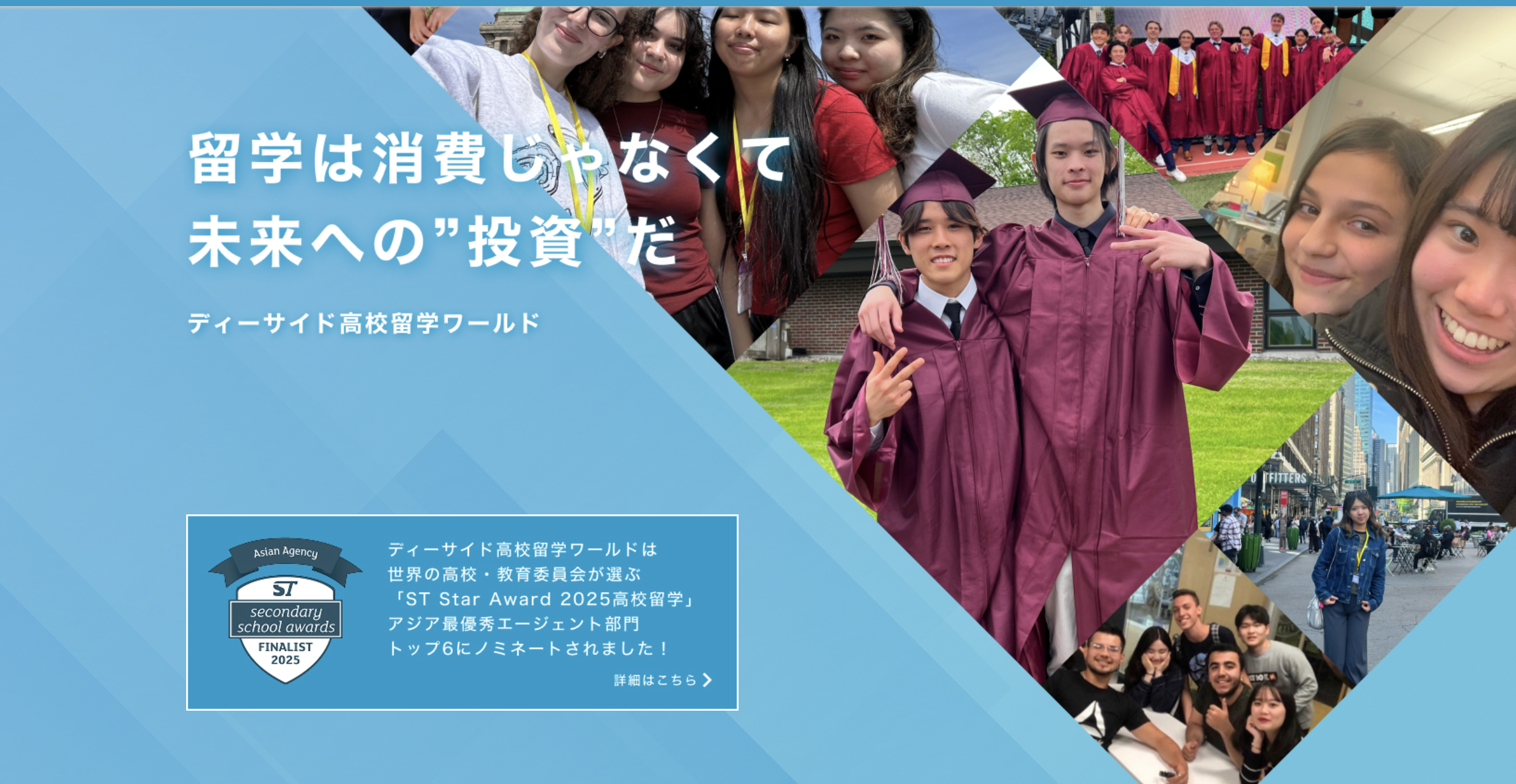 弊社が運営するディーサイド留学情報センターは、高校正規留学に強みを持つ留学エージェントとして、1999年に大阪にて創業いたしました。以来、世界32カ国、1,000校以上の教育機関と提携し、語学留学やワーキングホリデーに加え、高校留学や大学留学といった進学留学、法人様向け海外留学、海外インターンシップなど、幅広い海外留学プログラムを提供しております。